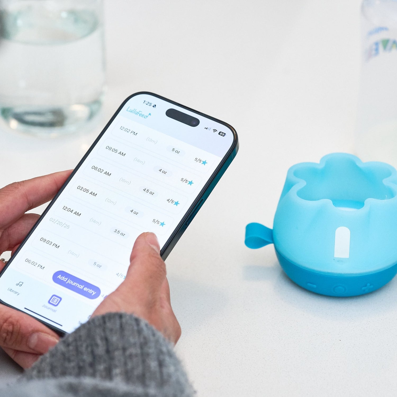 The LullaFeed® app lets you personalize lullabies and track feeding progress.